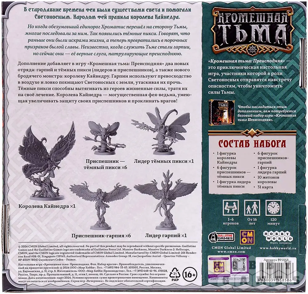 В настолке "Кромешная тьма: Преисподняя" вы становитесь одним из Светоносных – избранных героев, обученных искусству борьбы с Тьмой. Каждый из игроков выбирает себе персонажа, который будет сочетать в себе неповторимые особенности и стиль игры. Объединив усилия, вы отправитесь в самое сердце Тьмы, пробиваясь сквозь орды врагов в бесконечных подземельях. На этом пути вам предстоит искать ценные трофеи, развивать навыки персонажей и использовать силу сумрака для уничтожения зла.