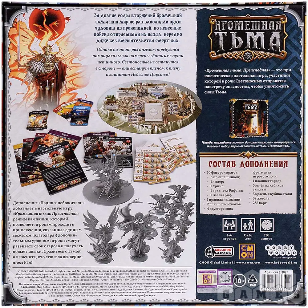 В настолке "Кромешная тьма: Преисподняя" вы становитесь одним из Светоносных – избранных героев, обученных искусству борьбы с Тьмой. Каждый из игроков выбирает себе персонажа, который будет сочетать в себе неповторимые особенности и стиль игры. Объединив усилия, вы отправитесь в самое сердце Тьмы, пробиваясь сквозь орды врагов в бесконечных подземельях. На этом пути вам предстоит искать ценные трофеи, развивать навыки персонажей и использовать силу сумрака для уничтожения зла.