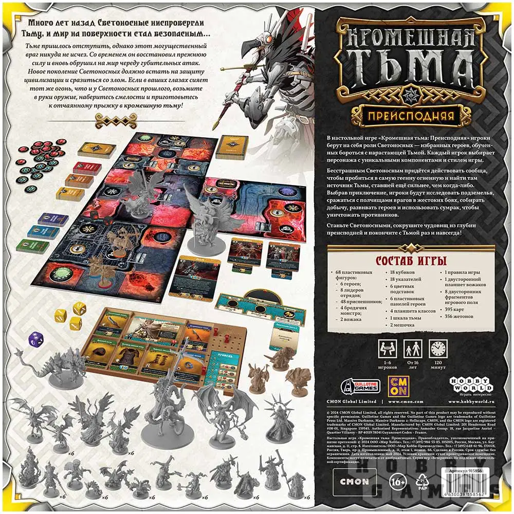 В настолке "Кромешная тьма: Преисподняя" вы становитесь одним из Светоносных – избранных героев, обученных искусству борьбы с Тьмой. Каждый из игроков выбирает себе персонажа, который будет сочетать в себе неповторимые особенности и стиль игры. Объединив усилия, вы отправитесь в самое сердце Тьмы, пробиваясь сквозь орды врагов в бесконечных подземельях. На этом пути вам предстоит искать ценные трофеи, развивать навыки персонажей и использовать силу сумрака для уничтожения зла.