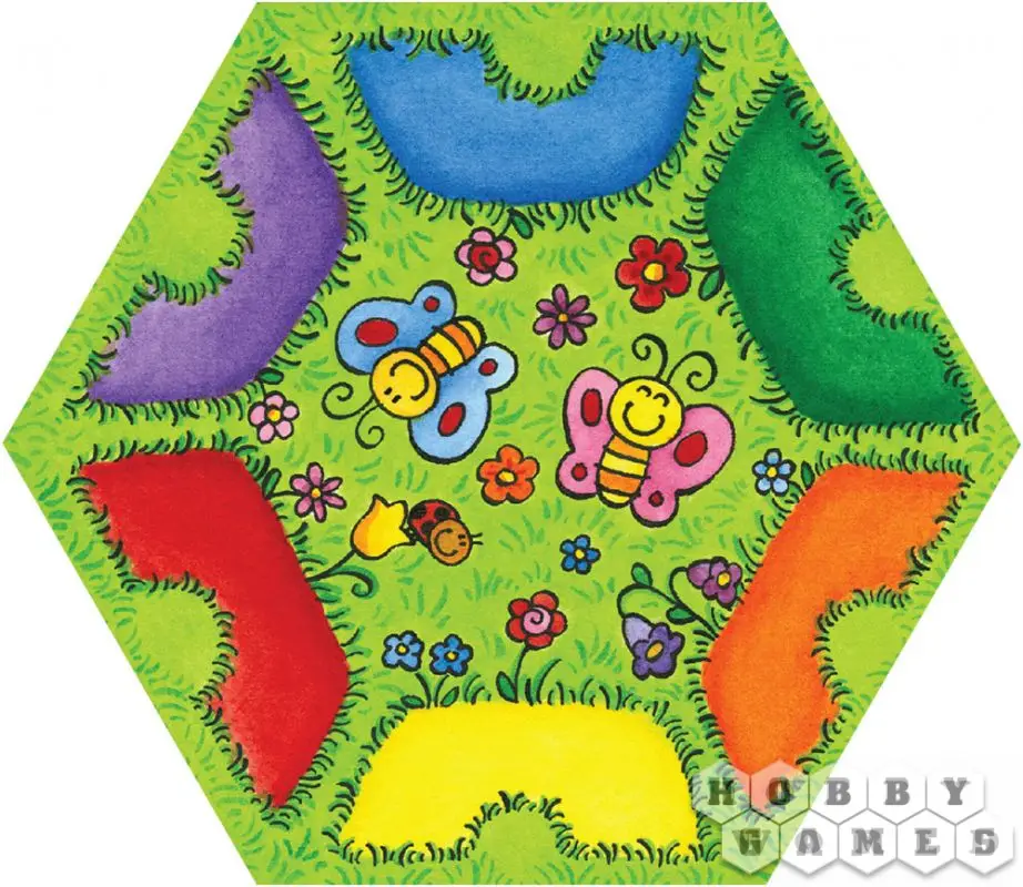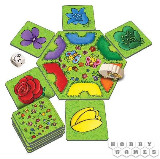 В центре стола находится игровое поле, которое изображает зелёный цветочный луг. Луг делится на шесть зон, в которых может находиться деревянная фигурка Кучеряшки. Зоны отличаются по цветам: присутствуют все цвета радуги, кроме голубого. Рядом с этими зонами кладутся жетоны соответствующих цветов, которые игроки будут забирать в качестве награды. В начале игры это всего лишь два жетона. Игровой процесс очень простой.