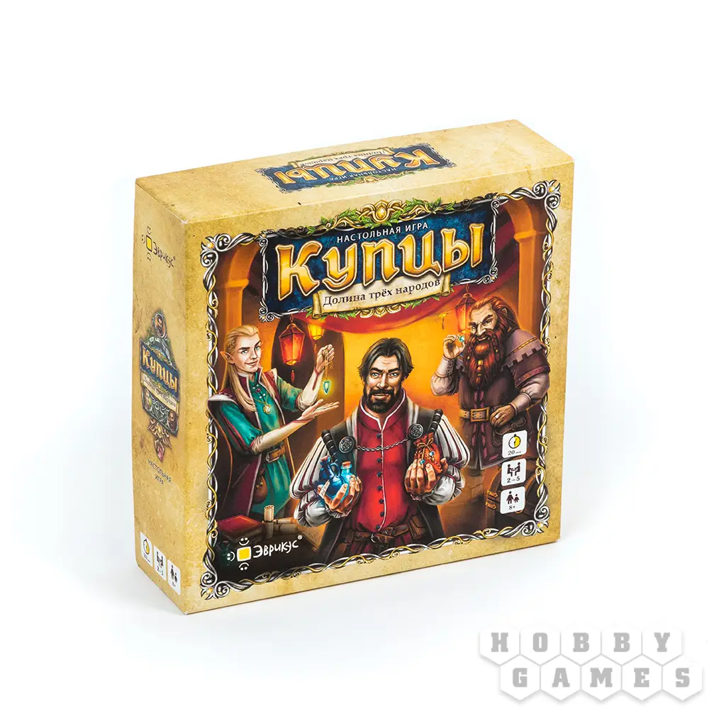 "Купцы. Долина трех народов" - карточная настольная игра, в которой участники перенесутся на шумную ярмарочную площадь. Ловко лавируя между торговыми рядами, они покупают, меняют, продают различные товары. Их заветное желание - стать самыми богатыми купцами на рынке.