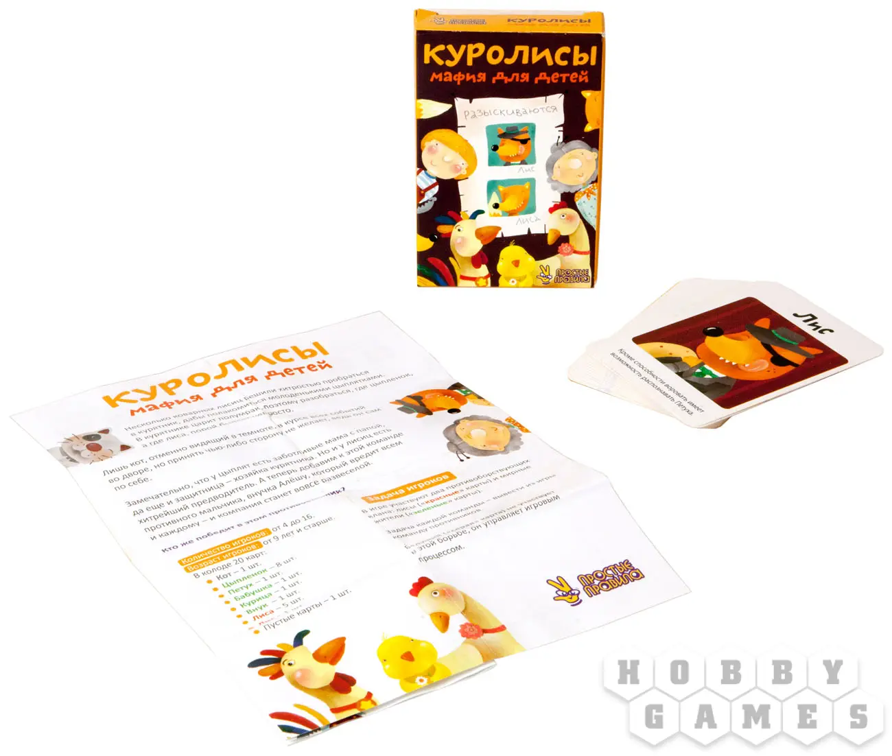 Правила достаточно просты. Игрокам раздаются карты из колоды, на которых изображен один из следующих персонажей: Лис, Курица, Кот, Петух, Цыпленок, Внук или Бабушка. Действия каждого героя определены правилами. В игре есть персонаж, который руководит курятников – это нейтральный персонаж Кот.