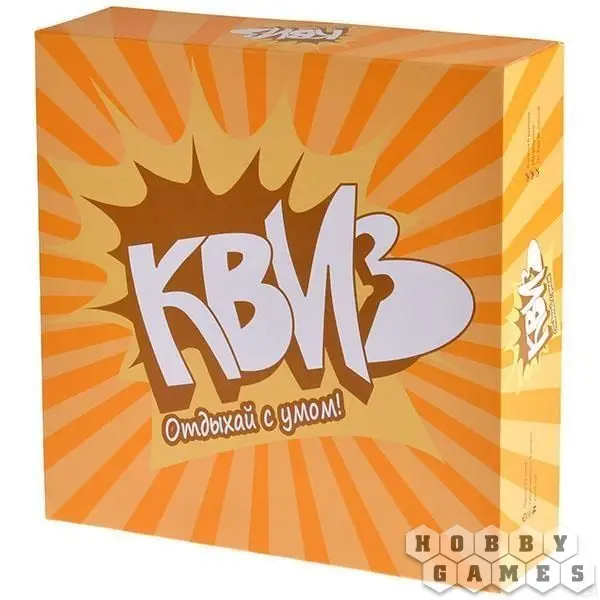Игра "КВИЗ" станет простым и занятным способом размять мозги в большой компании. В игре могут участвовать от трёх до тридцати человек, поэтому собирайте большую компанию знатоков и разделитесь на несколько команд. Вопросы варьируются от простых до очень сложных и потребуют знания из самых разных областей. Каждый найдёт тему по вкусу: фильмы, игры, мемы или литература, история, наука. Любые знания пригодятся, но победа достанется лишь самым умным!