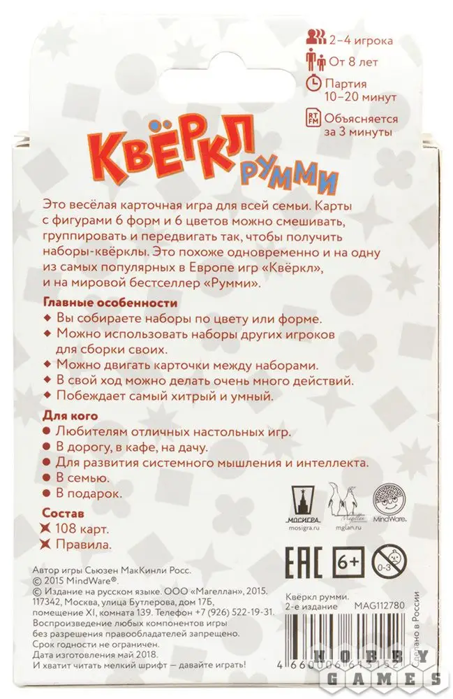 Эх, набрать бы квёрклов побольше! А что это? Это название настольной игры – "Квёркл Румми", а также условие победы в ней. Но как создать квёркл? Собираете шесть разных карт с одинаковыми фигурами или одинакового цвета и квёкрл у вас в кармане!