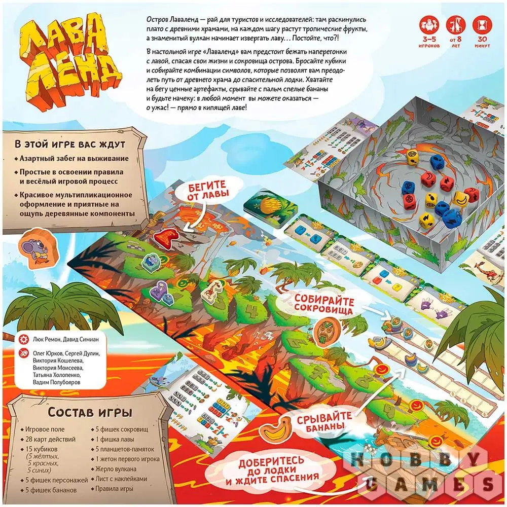 "Лаваленд" – это быстрая и азартная гонка на выживание. От трёх до пяти игроков будут пытаться пересечь остров во время извержения вулкана, спасаясь при этом от приближающейся беспощадной лавы. Но добраться до спасительной лодки – это полдела, сесть в неё можно, только накопив достаточное количество провианта. А победит тот, кто сможет, ко всему прочему, захватить с собой как можно больше туземных реликвий.