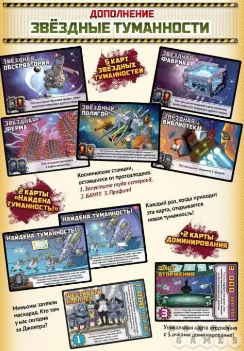 Когда карта звёздной туманности в игре, злодеи могут запускать в неё астероиды на пользу себе и во вред остальным. Однако туманность выдержит только 3 попадания! Кто успеет раньше?