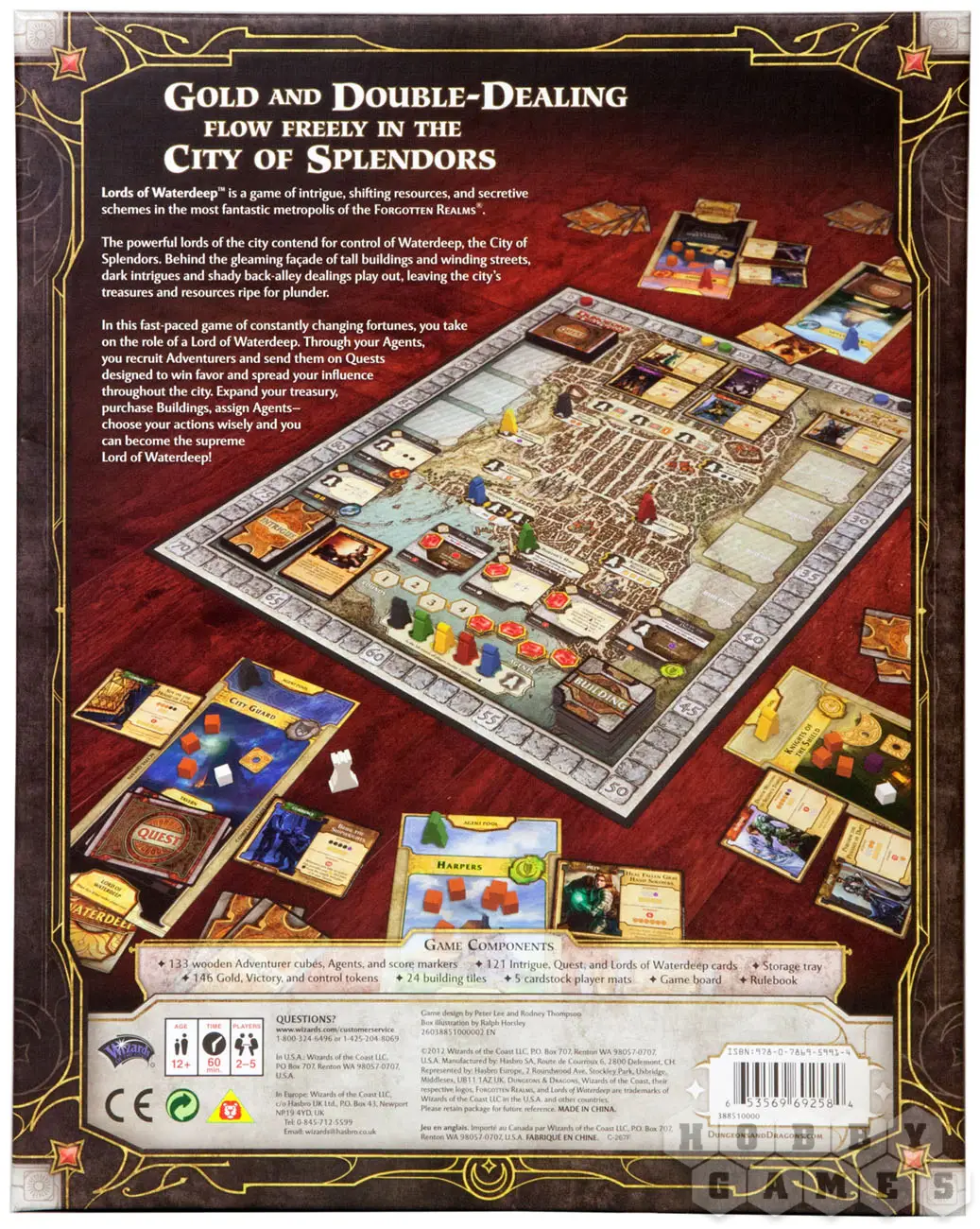 «Lords of Waterdeep/ Лорды Уотердипа» – это настольная игра, посвященная экономике и политическим интригам в Забытых Королевствах вселенной Dungeons & Dragons. Город Уотердип – самый крупный и сильный, он управляется Лордами, роли которых и придется примерить на себя игрокам. У каждого Лорда, или игрока, будет своя сеть агентов, они будут нанимать людей, которые ищут приключения, отправлять их на секретные и очень рискованные задания и получать славу и деньги. По мере увеличения агентурной сети будет увеличиваться и влияние Лордов на жизнь города. Занимаясь строительством новых зданий, игроки получат новые возможности в игре. Лорды могут как помогать другим Лордам, так и вредить им.