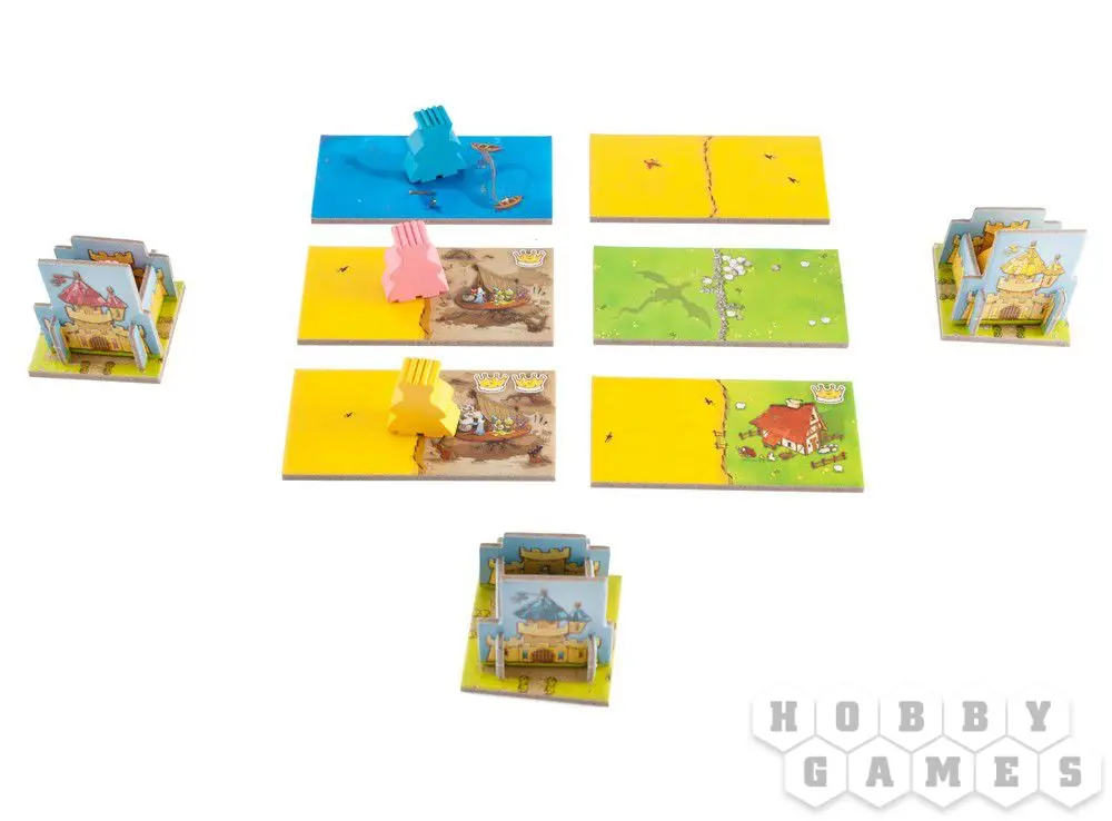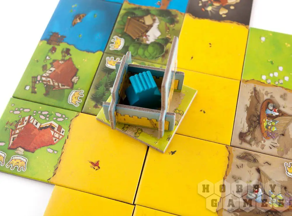 "Лоскутное королевство" похоже на игру в домино, только в роли костяшек здесь выступают участки земли с разным ландшафтом, совмещённые попарно. Задача игроков собирать земли вокруг замка, помня два важных правила: