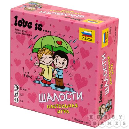 В настольной игре "Love is... Шалости" одному игроку предстоит придумывать подписи к картинкам на карточках, а затем рассказать об этом другому, который в свою очередь должен жестами изобразить загаданное.