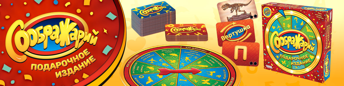Проверьте свою находчивость и сообразительность в большом подарочном издании игры "Соображарий"! Здесь собраны лучшие задания из разных частей серии. Переключайтесь между колодами и крутите вертушку с условиями ответов. Любимая игра стала ещё интереснее и веселее!