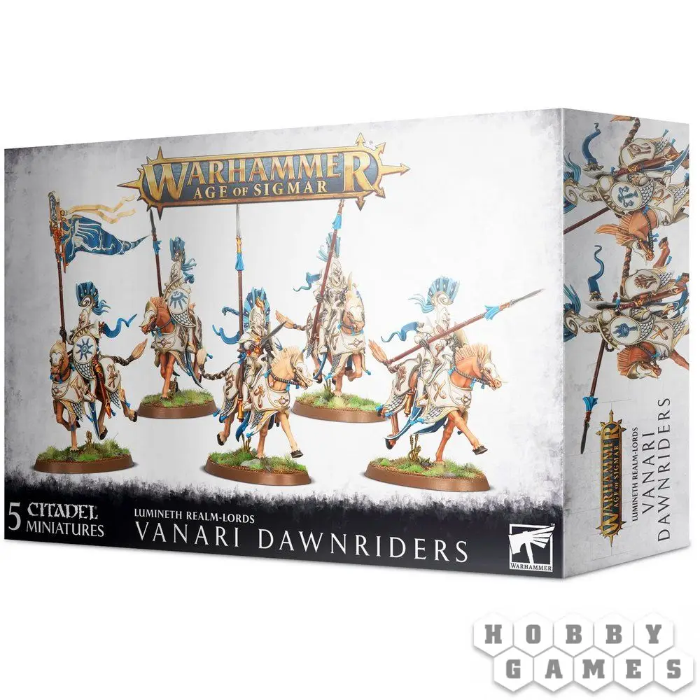 С помощью этого набора вы сможете собрать 5 Всадников рассвета Ванари, включая опции для Предводителя (Steedmaster) и Знаменосца (Standard Bearer). Дополнительные щиты и шлемы позволят придать вашим миниатюрам уникальный внешний вид. Внутри коробки 79 пластиковых деталей и 5 овальных подставок размером 60x35 миллиметров.