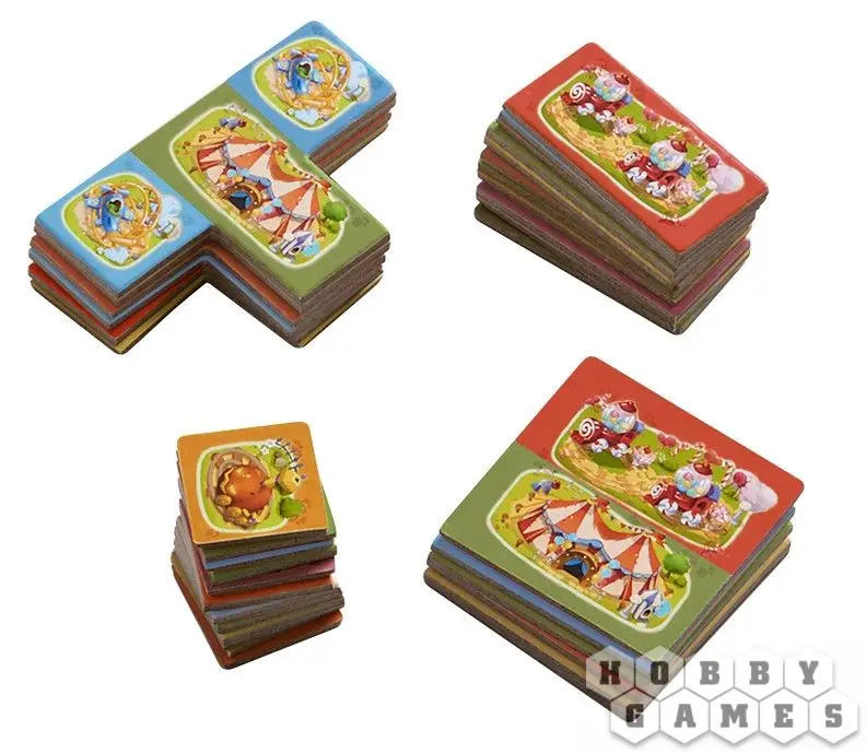Каждый игрок получает планшет парка с клетками. Именно на эти планшеты игроки будут расставлять полученные жетоны аттракционов, которые имеют различную форму и занимают разное количество клеток.