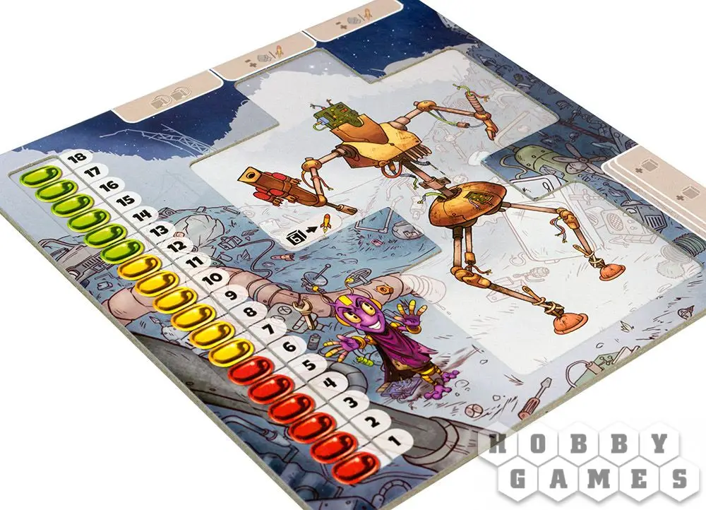 При игре вдвоём каждый участник берёт себе по два планшета роботов, так что в этом случае появляется ещё больше простора для технического прогресса!