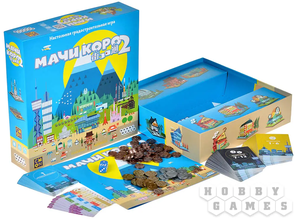 "Мачи Коро 2" – это градостроительная настольная игра для всей семьи, в которой вам предстоит взять на себя роль не абы кого, а самого мэра! Каждый из вас старается привлечь в свой город как можно больше туристов, а ничто не привлекает их лучше, чем достопримечательности: именно в их строительстве вы и будете соревноваться. Однако строительство чего-то примечательного стоит дорого, поэтому надо сначала пополнить казну: стройте в своём городе промышленные предприятия, магазины, рынки, кафе и рестораны, которые будут приносить вам доход в виде приятных пластиковых монеток! Подойдите к делу с умом, и успех не заставит себя долго ждать!