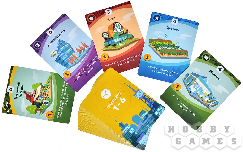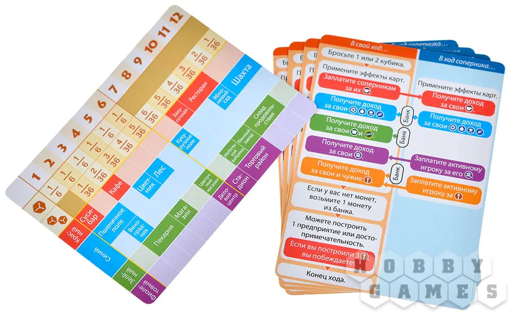 Активный игрок в свой ход бросает кубик и получает доход с предприятий, которые имеют номер, соответствующий результату на кубике. Каждый тип предприятия работает по-разному: с одних вы будете получать деньги только в свой ход, с других – в ход любого игрока.