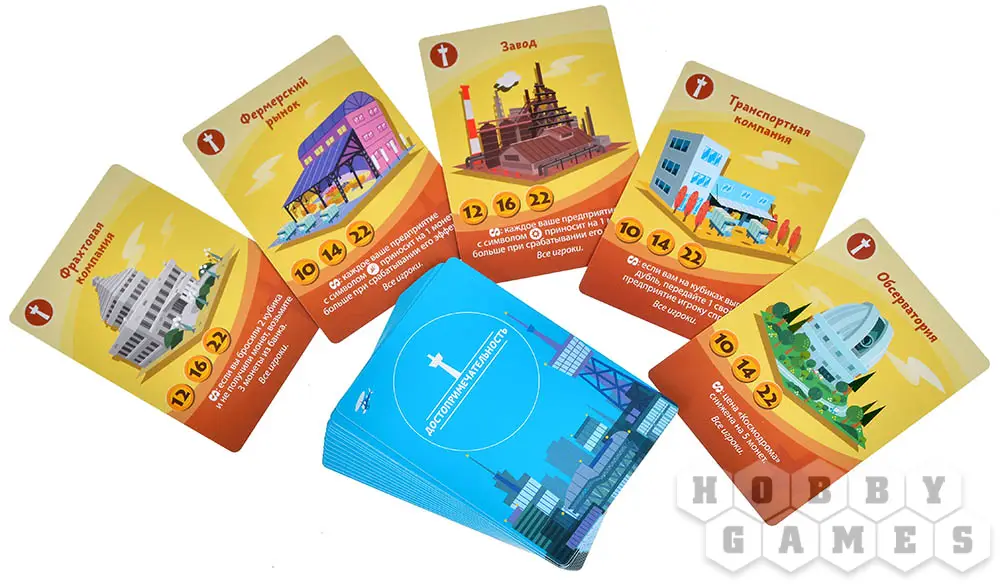 Когда прибыль получена, активный игрок приступает к строительству. Для этого нужно выбрать одну карту из резерва, оплатить её стоимость и разместить в своём городе. Далее ход передаётся следующему игроку. И вот так, шаг за шагом, каждый из вас идёт к своей мечте – идеальному городу!