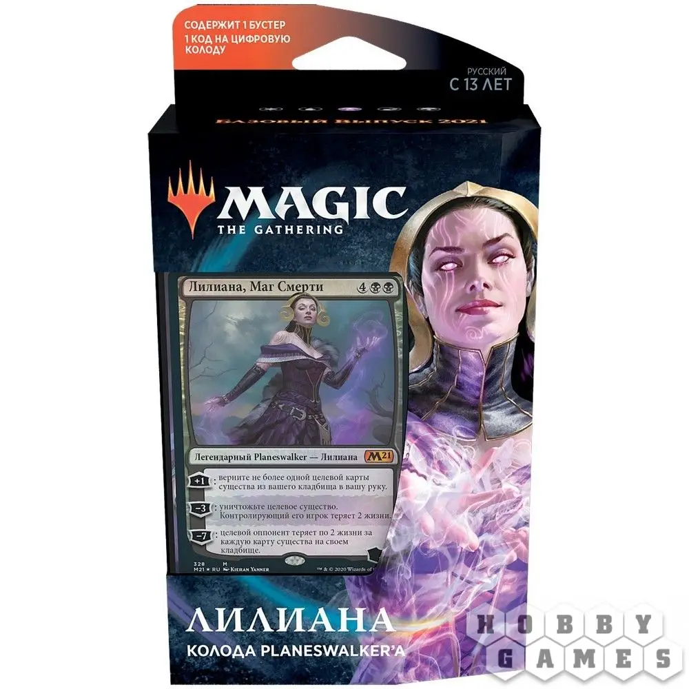 Planeswalker Лилиана, Маг Смерти – самый сильный маг тёмных сил и, конечно же, её место в рядах чёрного цвета в "Базовом Выпуске 2021". Смерть ваших существ не продлится долго, зато принесёт вам награду. А отправив на кладбище как можно больше существ оппонента, вы сможете испить все его жизненные силы за один раз.
