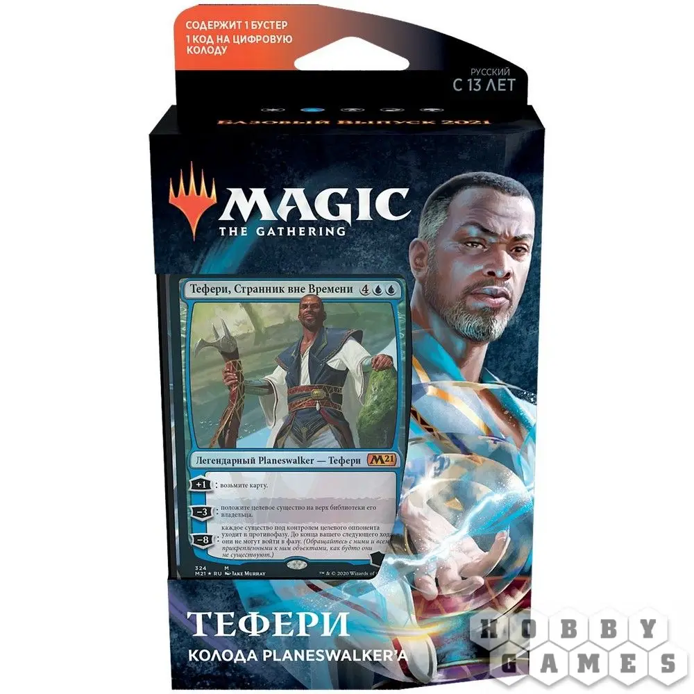 Planeswalker Тефери – Странник вне Времени, буквально путешествует во времени, и сюжет "Базового Выпуска 2021" – его рук дело. Магия времени всегда была отличительной чертой синего цвета, поэтому и колода Тефери именно такого цвета. Берите карты каждый ход, возвращайте существ противника бумерангом, но не в руку, а на верх колоды.