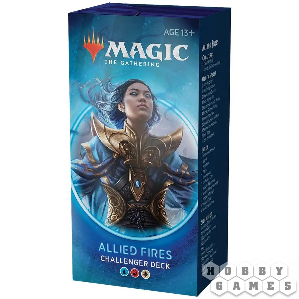 Что может быть круче, чем армия? Только армия Planeswalker-ов! И Challenger Deck 2020: Allied Fires предоставит вам её. С учётом сайдборда, колода Allied Fires содержит шестнадцать карт Planeswalker-ов, и это абсолютный рекорд среди заранее подготовленных производителем колод. Также в колоде всего девять стандартных карт земли, а остальные восемнадцать выбраны с учётом максимального взаимодействия с другими картами колоды.