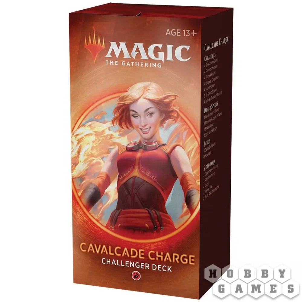 Challenger Deck 2020: Cavalcade Charge – это колода для настоящих поклонников красной манны, а также для всех тех, кто хочет повести в бой юную Чандру. Минимальное количество заклинаний, огромное количество существ: от огромных гигантов до миниатюрных гоблинов и гномов. На случай, если вам не будет хватать прямого урона, в сайдборде лежат проверенные заклинания для уничтожения противника.