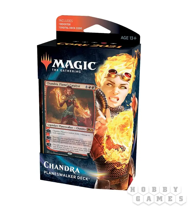 Planeswalker Чандра, Разжигающая Пламя, как и всегда, отвечает за красный цвет, в том числе и в "Базовом Выпуске 2021". Сжигайте своих оппонентов и их существ до тла при помощи красной магии. Копите силу для решающей атаки и разыграйте множество заклинаний бесплатно!