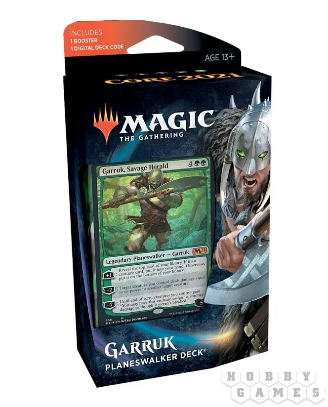 Planeswalker Гаррук, Первобытный Предвестник – представляет зелёную колоду "Базового Выпуска 2021". Ваша цель – вывести на поле как можно больше мощных существ, а потом сделать их ещё сильнее.