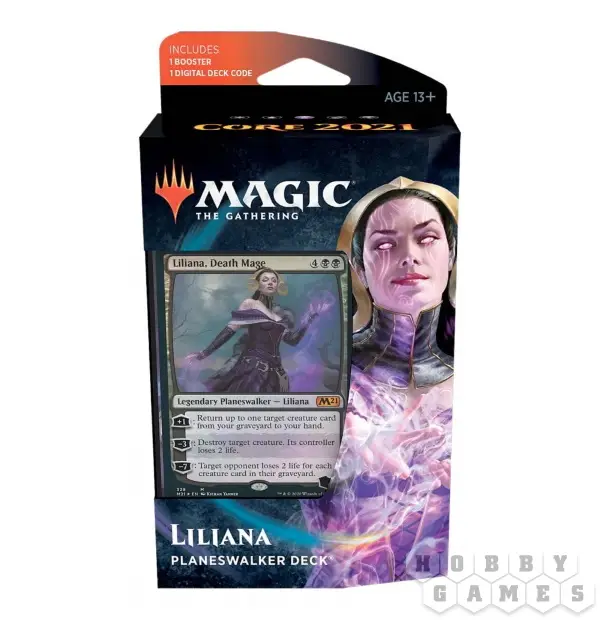 Planeswalker Лилиана, Маг Смерти – самый сильный маг тёмных сил и, конечно же, её место в рядах чёрного цвета в "Базовом Выпуске 2021". Смерть ваших существ не продлится долго, зато принесёт вам награду. А отправив на кладбище как можно больше существ оппонента, вы сможете испить все его жизненные силы за один раз.
