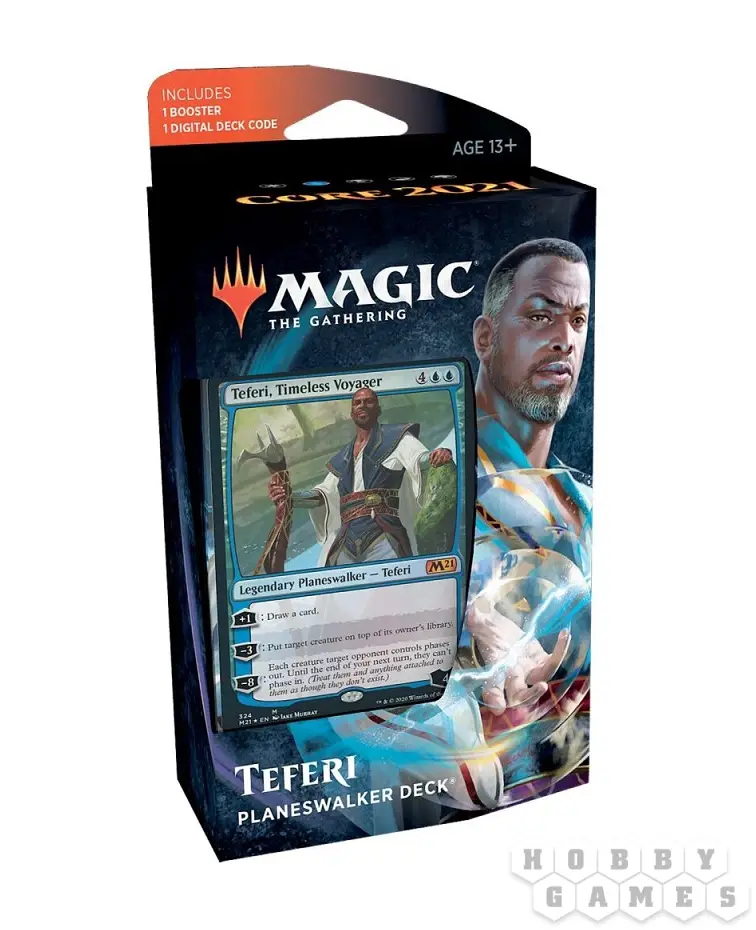 Planeswalker Тефери – Странник вне Времени, буквально путешествует во времени, и сюжет "Базового Выпуска 2021" – его рук дело. Магия времени всегда была отличительной чертой синего цвета, поэтому и колода Тефери именно такого цвета. Берите карты каждый ход, возвращайте существ противника бумерангом, но не в руку, а на верх колоды.