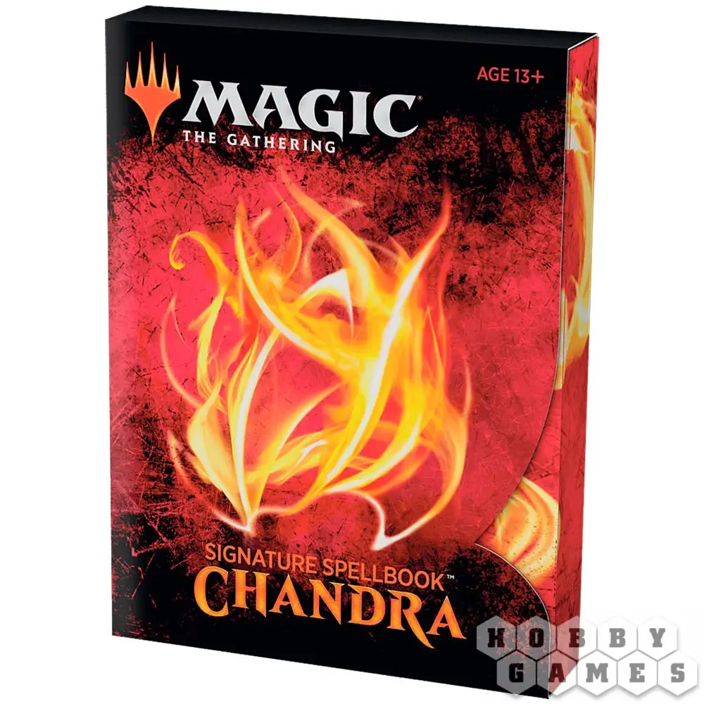 Signature Spellbook: Chandra включает в себя восемь простых карт выпуска, а также фольгированную премиум-версию одной из этих восьми простых карт. Это идеальный способ показать свою любовь к Чандре Налаар, разнообразить свою колоду формата "Командир" или же... просто помочь этому миру сгореть – в хорошем смысле этого слова.