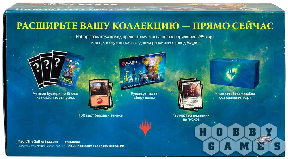 Набор для составления колод Magic создан для игроков, которые хотят самостоятельно составить свою первую или последующие колоды и побеждать с их помощью. Здесь вы отыщите всё самое необходимое для полноценной игры в Magic. Набор содержит почти три сотни различных карт и позволит вам создавать комбинации для множества тактик ведения битвы. Экспериментируйте, сражайтесь, побеждайте. Набор станет отличным подарком как новичку, желающему приобщиться к игре, так и опытному волшебнику.