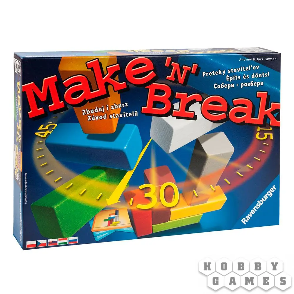 Настольная игра "Make ’n’ Break" (Собери-разбери) — новая забава для веселой компании, имеющая простые и доступные правила, а также нетривиальный игровой процесс. В особенности она придется по вкусу детям и подросткам, обожающим строительство из кубиков или конструктора.