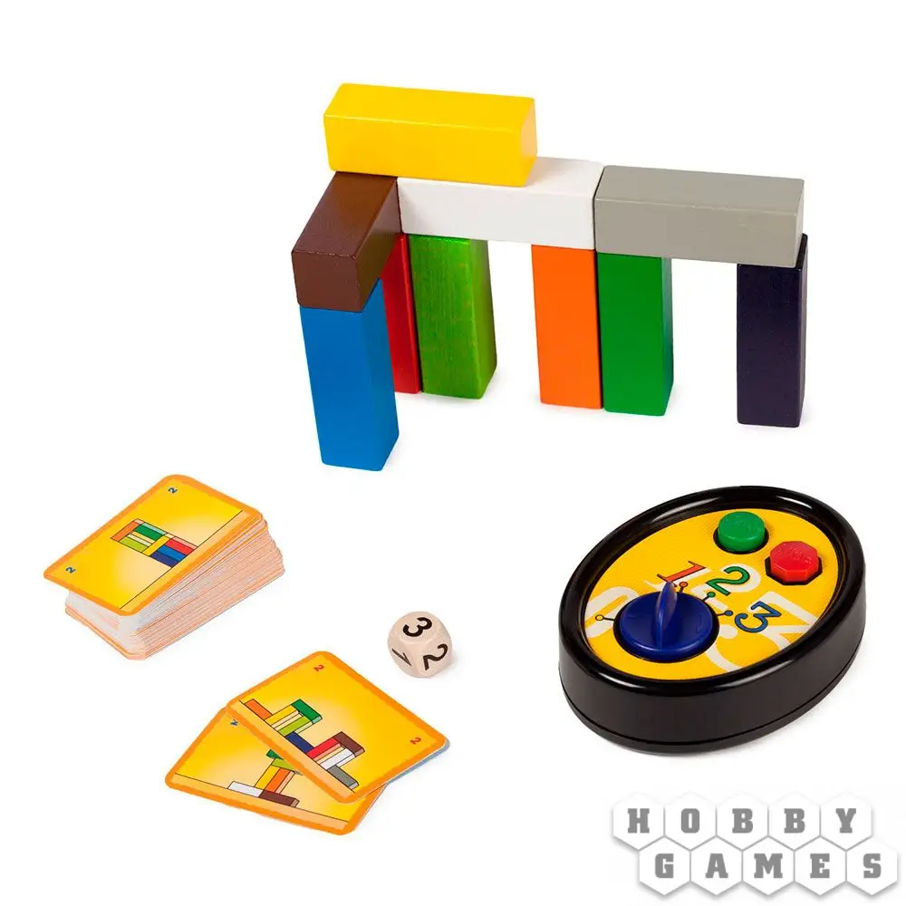 Комплект игры включает строительные запчасти из различных фигур и кубиков. Их необходимо расположить, следуя разнообразным "задачкам". Цель игрока – как можно быстрее (на время) собирать и разбирать постройки, указанные в карте-задании.