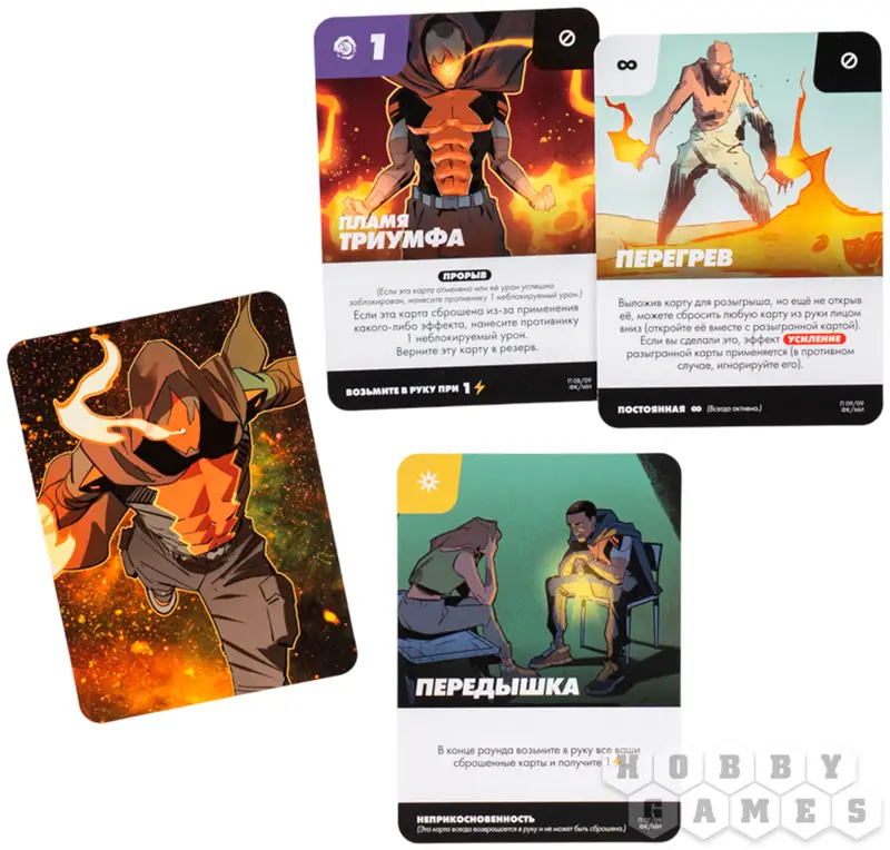 Сила проверенной системы "Карманного поединка" обретает новую мощь. Цель неизменна: первым свести здоровье соперника с 10 до нуля или нанести сокрушительный решающий удар. В каждом раунде игроки тайно выбирают и одновременно вскрывают карты, где интеллект побеждает силу, сила – ловкость, а ловкость – интеллект. Неотменённые карты наносят урон, который может быть заблокирован защитой. После фазы эффектов сыгранные карты уходят в сброс, и их возвращение через "передышку" становится самым рискованным моментом партии – отдых может быть мгновенно прерван победным ударом противника!