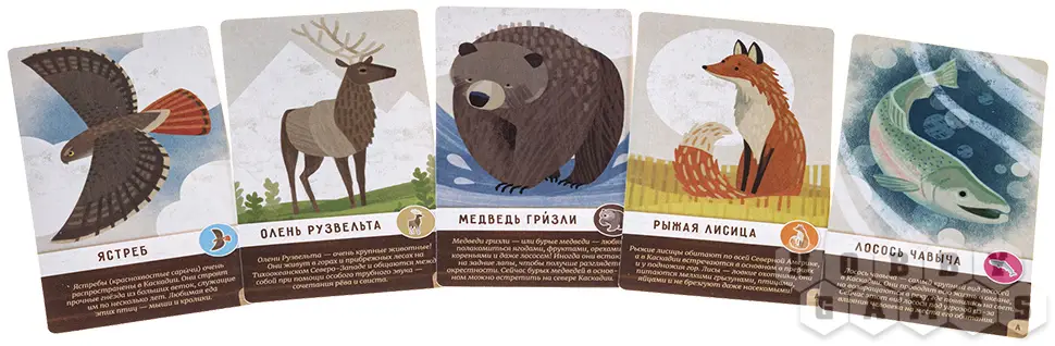"Маленькая Каскадия" – это яркая и динамичная стратегическая игра, специально разработанная для детей. Вам предстоит собирать красочные жетоны с изображением пяти типов ландшафтов: густых лесов, топких болот, бескрайних прерий, величественных гор и извилистых рек. Размещая их на своём планшете, вы создаёте уникальную экосистему, которую затем заселяете различными видами животных. За каждую удачную комбинацию из трёх одинаковых зверей или группу однотипных ландшафтов вы получаете особые жетоны с заветными шишками – вашей победной валютой.