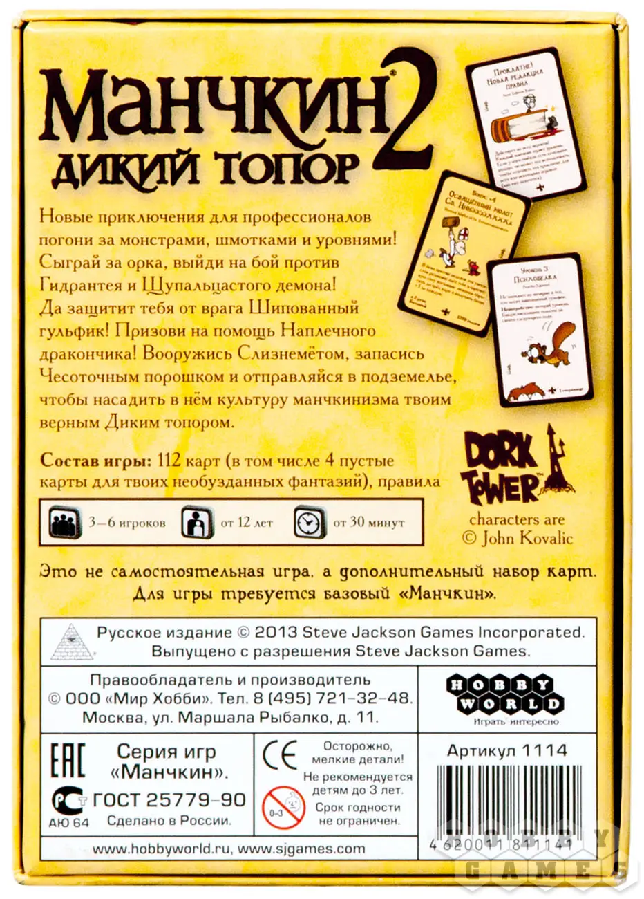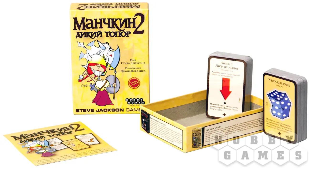 Настольная игра "Манчкин Дикий Топор" ("Манчкин 2") подкинет новых монстров под шипованые бутсы любителей приключений без долгого отыгрыша и скучных правил. Обитатели фантастических подземелий не устоят перед вашим расширенным арсеналом. Юмор от Стива Джексона и иллюстрации художника по комиксам Джона Ковалика прилагаются.