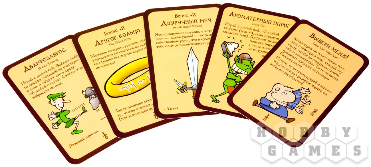 В начале партии игроки начинают как обычные люди своего пола (да-да, в игре есть даже различие полов!) первого уровня. В ваш ход вы выбиваете дверь, то есть переворачиваете верхнюю карту колоды дверей, и выполняете условия, написанные на карте. Если же это карта монстра, то вам не повезло и придётся вступить с ним в бой. Когда сила игрока больше или равна силе монстра, тогда игрок побеждает и может взять столько карт сокровищ, сколько указанно на карте с монстром. Во время боя другие игроки могут помогать товарищу и вступить с ним в бой, или же мешать и всячески усиливать вылезшего врага. Если игрок побеждает в бою, то он получает один уровень. В течение партии игроки будут применять на себя разные классы и профессии, менять свой пол, напяливать различные шмотки, пить подозрительные зелья, а также сражать самых разнообразных монстров!