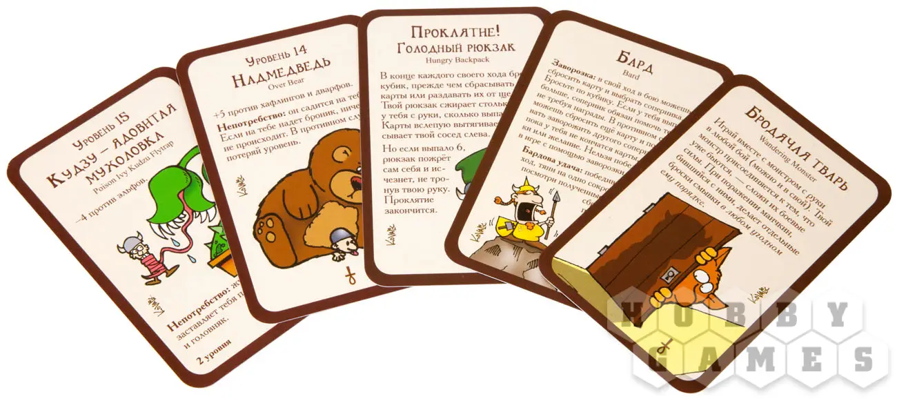 Итак, настольная игра "Манчкин" – это ролевая игра по форме, пародия по содержанию. Манчкины игроков ходят по подземелью, вытаскивают на свет божий тамошних чудовищных обитателей и либо раскаиваются в этом, либо получают за победу новые уровни и сокровища. Исход каждого подобного приключения (боя, короче) зависит от того, кто с чем на бой вышел. У игрока это уровень и бонусы/штрафы от шмоток, класса, расы и проклятий. У монстра это уровень плюс карты-усилители и разовые шмотки. Откуда шмотки у монстра? В Вашем бою могут принять участие и завистливые соперники: они могут помогать монстру и ослаблять вас. Поэтому, хотя в "Манчкин" и можно играть вдвоём, наберите на матч побольше народу: на руках будет больше проклятий, усилителей и зелий, которыми так легко изменить баланс сил в бою в любую сторону, и бдительные завистники не дадут никому из Вас выйти в единоличные лидеры гонки к 10-му победному уровню.