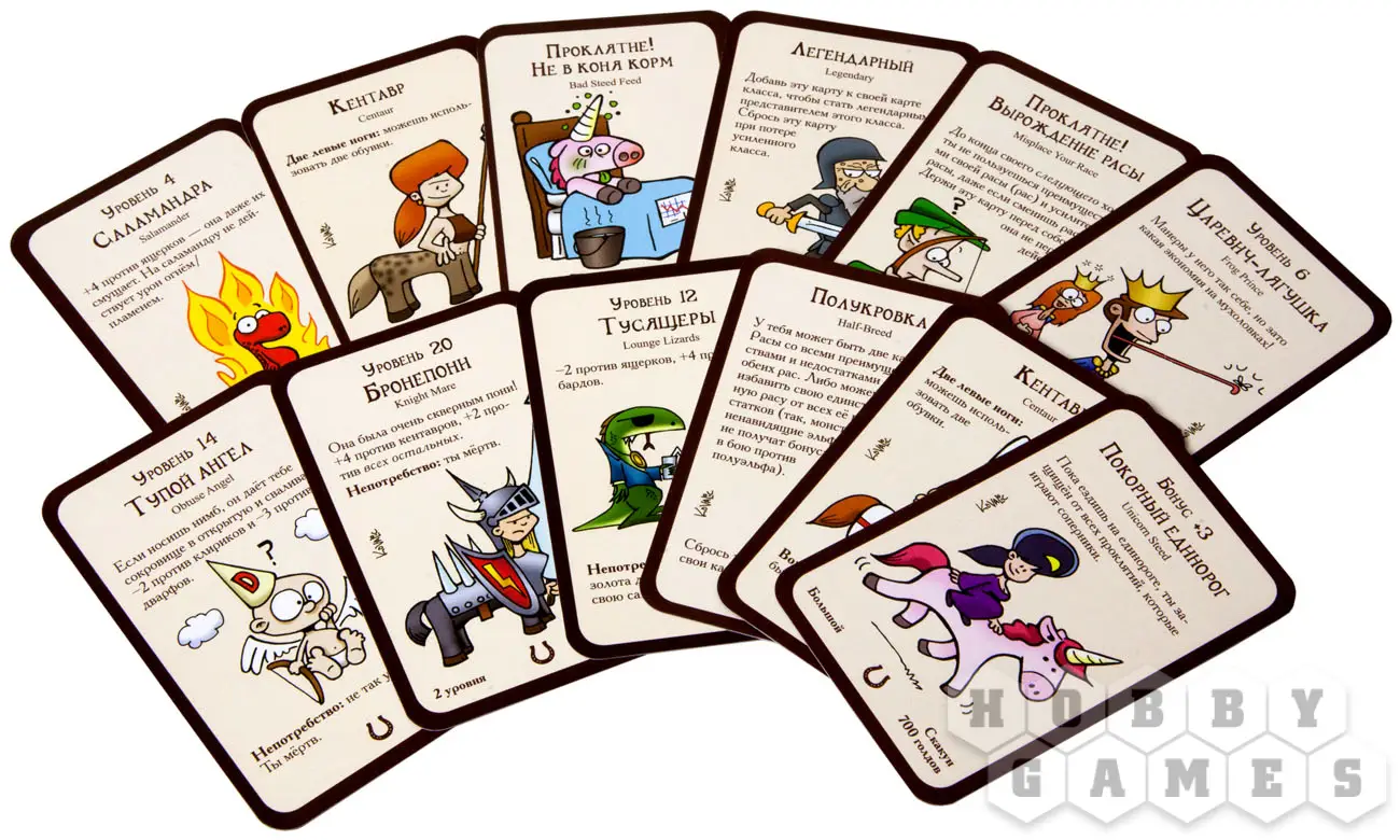 Итак, настольная игра "Манчкин" – это ролевая игра по форме, пародия по содержанию. Манчкины игроков ходят по подземелью, вытаскивают на свет божий тамошних чудовищных обитателей и либо раскаиваются в этом, либо получают за победу новые уровни и сокровища. Исход каждого подобного приключения (боя, короче) зависит от того, кто с чем на бой вышел. У игрока это уровень и бонусы/штрафы от шмоток, класса, расы и проклятий. У монстра это уровень плюс карты-усилители и разовые шмотки. Откуда шмотки у монстра? В Вашем бою могут принять участие и завистливые соперники: они могут помогать монстру и ослаблять вас. Поэтому, хотя в "Манчкин" и можно играть вдвоём, наберите на матч побольше народу: на руках будет больше проклятий, усилителей и зелий, которыми так легко изменить баланс сил в бою в любую сторону, и бдительные завистники не дадут никому из Вас выйти в единоличные лидеры гонки к 10-му победному уровню.