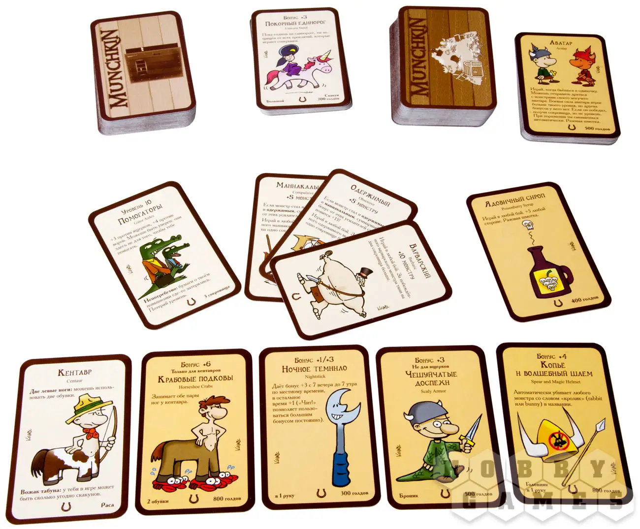 Игра "Манчкин" – локализация настольной карточной игры Munchkin. На русском языке игра, как ни старайся, приобретает новое звучание, но остаётся по-прежнему азартной, динамичной и злорадной. Ролевое зубоскальство по простым, но местами намеренно туманным правилам подвергает насмешкам благородных эльфов, мудрых магов, отважных воинов и мохноногих хафлингов. Клирики бьются с андедами, воры подрезают своих соперников в разгар боя, гигантские Кальмадзиллы и мерзкие Лицесосы стремятся отравить или отнять геройские жизни Ваших манчкинов, но так, на расслабоне, без долгих речей и многочисленных бросков разногранных костей, принятых в D&D, GURPS и прочих равенлофтах.