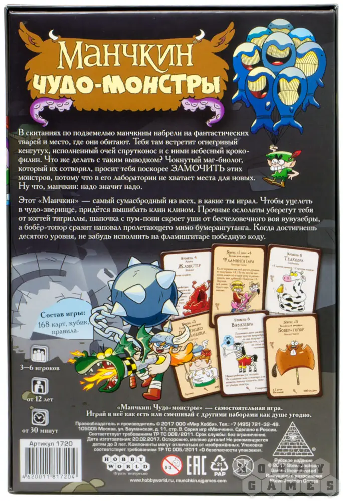 "Манчкин: Чудо-монстры" – самостоятельная игра. Играй в неё как есть или смешивай с другими наборами, как душе угодно.