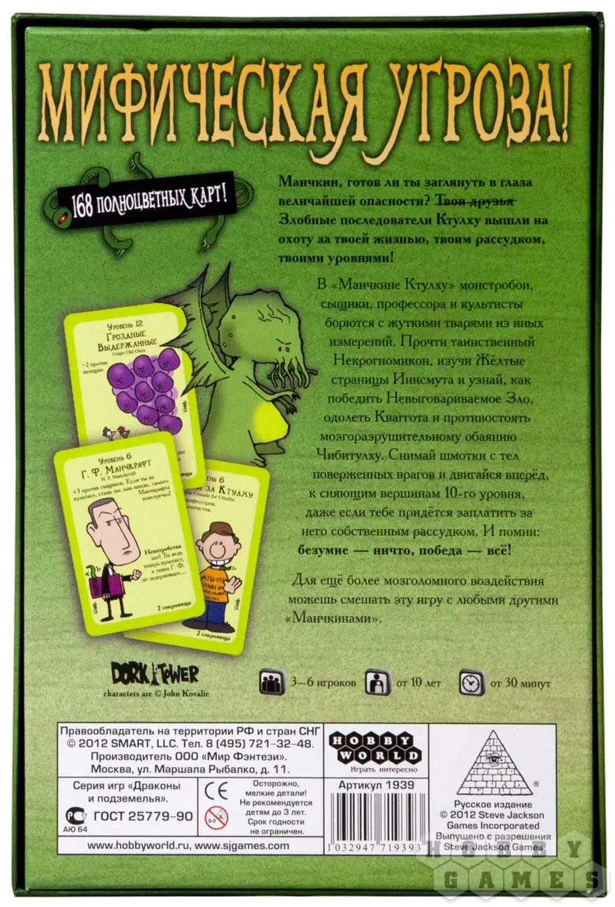 Звёзды только что встали не на свои места, а манчкины уже вышибают двери в иные миры, о которых человечество даже не должно было знать! Сыщики, Монстробои, Профессоры и Культисты рвутся в бой с монстрами Мифа. Ведь, в конце концов, если он монстр, у него же должны быть сокровища, да? И манчкину ли бояться безумия?! Важна только победа! Ну и шмоточки, конечно…