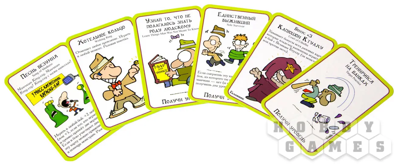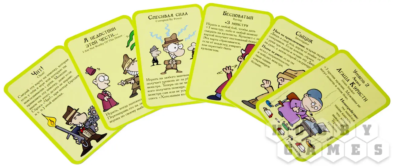Главное нововведение – это класс Культист и его особенности. Во-первых, эту карту нельзя сбросить по желанию, ведь попасть в секту проще, чем выйти из неё. При этом в колоде карт этого класса больше, чем других, что ещё сильнее облегчает вступление в Культ. Когда в игре остаётся только один не-Культист, он тут же получает уровень, который может быть победным, да-да! И на закуску – если все игроки стали Культистами, игра сразу завершается и побеждает игрок с максимальным уровнем.