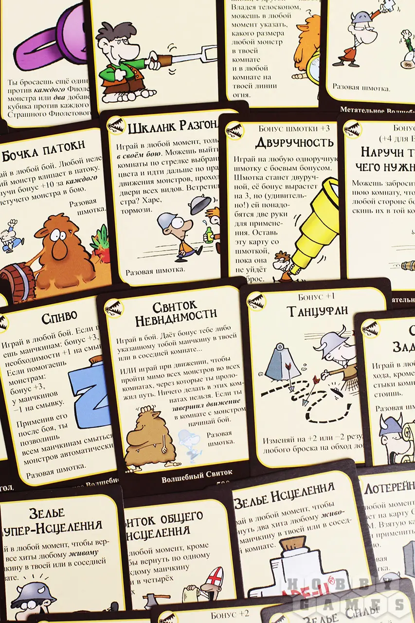 А между ловушками появились и новые комнаты, целых 18 штук! Комната Ужаса, комната Судьбы, роскошные магазины для богатых и лавочки барахольщиков для бедных. Комнаты для монстров и Храм Всеобщей Приятности для манчкинов.