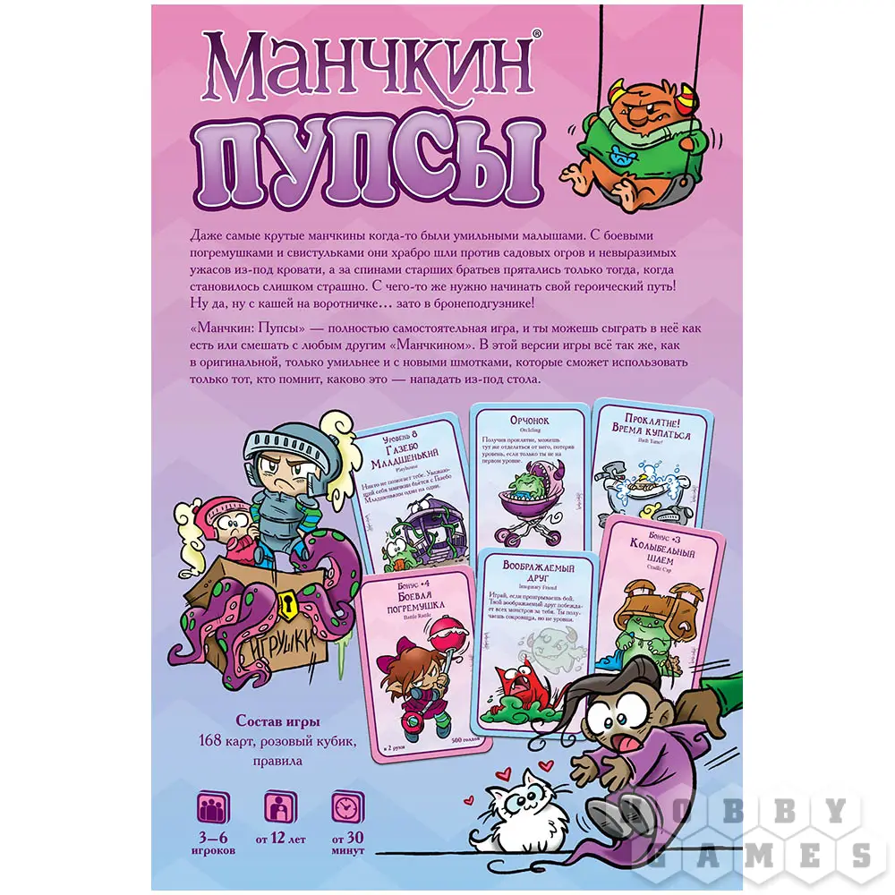 "Манчкин: Пупсы" – самостоятельная игра. Играй в неё как есть или смешивай с другими наборами как душе угодно.