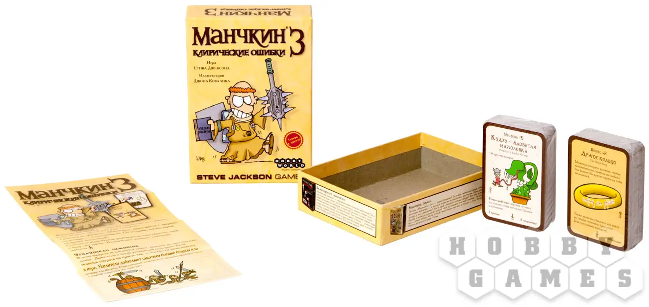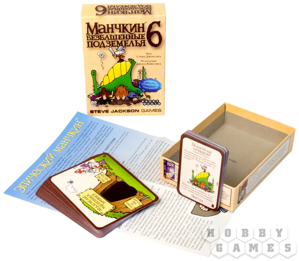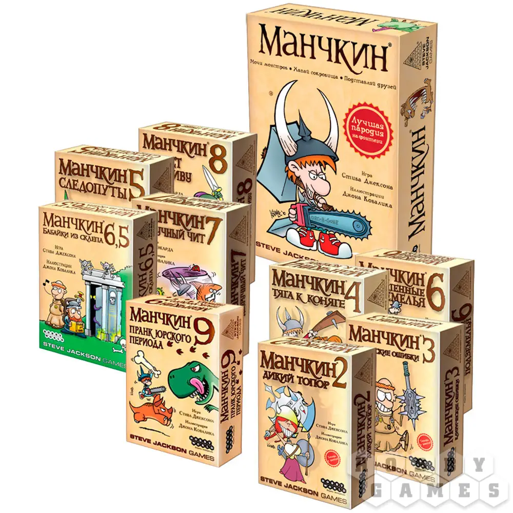 Данное предложение включает в себя полный набор классического "Манчкина" в фэнтезийном сеттинге: базовую игру и 9 дополнений в серии на русском языке. С помощью этого набора вы сможете опробовать множество новых классов и рас, получить свежие шмотки и вальнуть новых комичных монстров, походить по настоящим картам Подземелий, прокачаться до 20-го уровня в "Эпическом Манчкине" и создать суперколоду своей мечты, объединив сразу несколько или даже все дополнения данного набора!