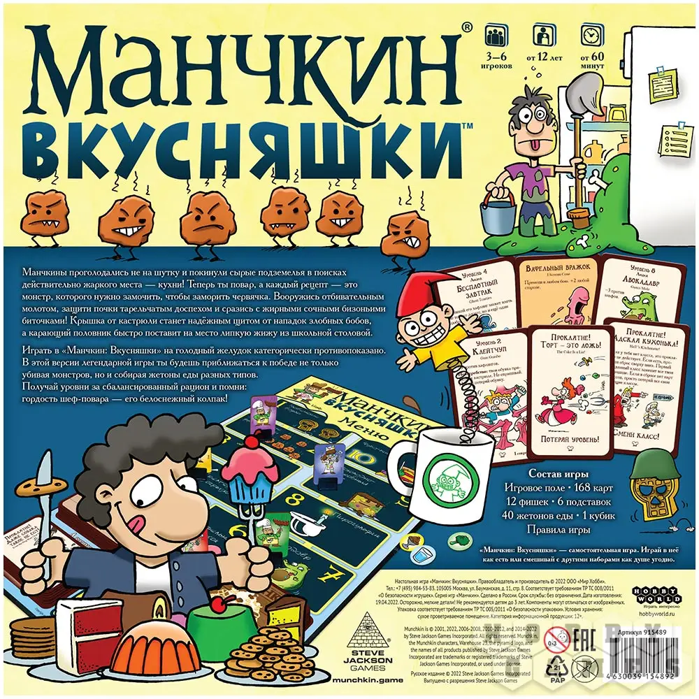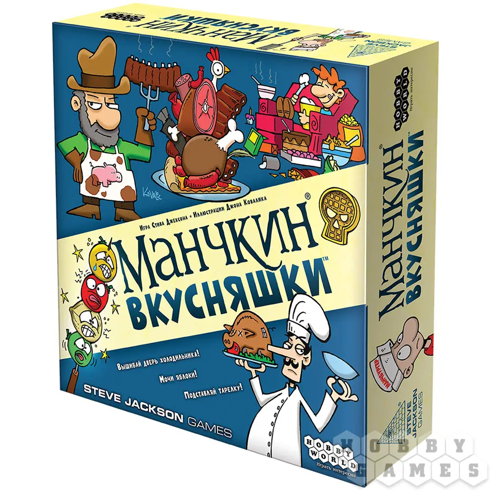 "Манчкин: Вкусняшки" – это новая часть легендарной серии, посвящённая вкусной и не очень пище, поварскому искусству и тонкому искусству приготовления. Теперь манчкинам предстоит стать поварами и получать уровни за приготовленные блюда, а также собирая жетоны разных типов еды. Сбалансированный рацион и тщательный отбор продуктов обязательно приведут вас к десятой звезде Мишлен!