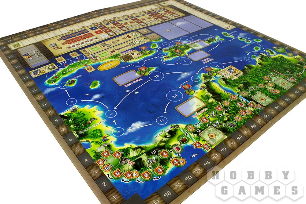 В ходе игры вам предстоит проплыть игровое поле на своём корабле, посещая города и деревни местных островов. Во время каждой такой остановки вы сможете выполнять различные действия. Вам предстоит сражаться под флагами великих держав, доставлять товары, исследовать материк и отправлять ваш экипаж за специальными поручениями в другие поселения. Игрок, который сможет извлечь наибольшую выгоду из своих карт, выберет оптимальную тактику и тем самым наберёт наибольшее количество победных очков, станет победителем и войдёт в историю как величайший мореплаватель Карибского бассейна!