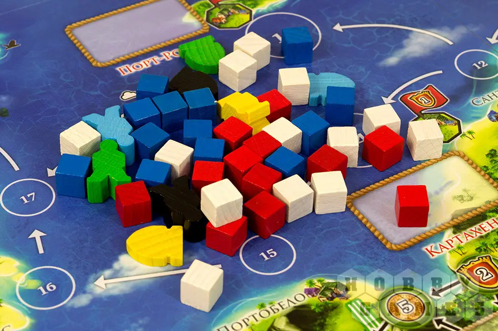 Механика "Наследие" в комплексном еврогейме – это по-настоящему захватывает и погружает в тематику игры. В этом режиме вы на протяжении нескольких игр будете совершать путешествие по Карибскому морю. В игре будут появляться новые карты сюжета и жетоны наследия, которые будут менять основные правила, в результате чего вам будут открываться новые возможности или, наоборот, будут появляться препятствия, которые необходимо преодолеть. Каждая последующая игра будет отличаться от предыдущей, а каждое ваше решение будет влиять на дальнейшее развитие событий.