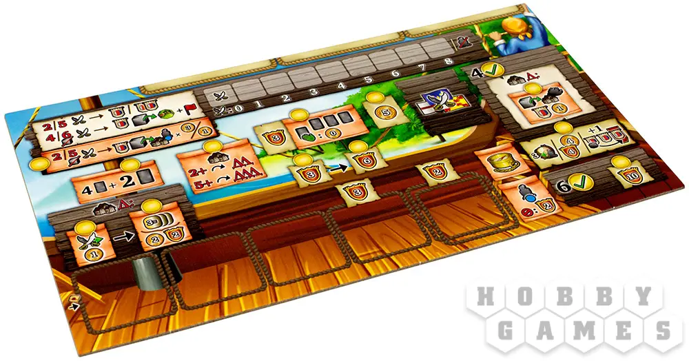 Основное действие. В зависимости от того, где находится ваш корабль, вам доступно одно основное действие. Если ваш корабль зашёл в гавань, в которой есть выбор из сразу нескольких основных действий, выполнить можно только одно из них. До, во время или после выполнения основного действия у вас есть возможность совершить любое количество бесплатных действий. Полный список действий и их обозначения вы сможете найти в правилах игры.