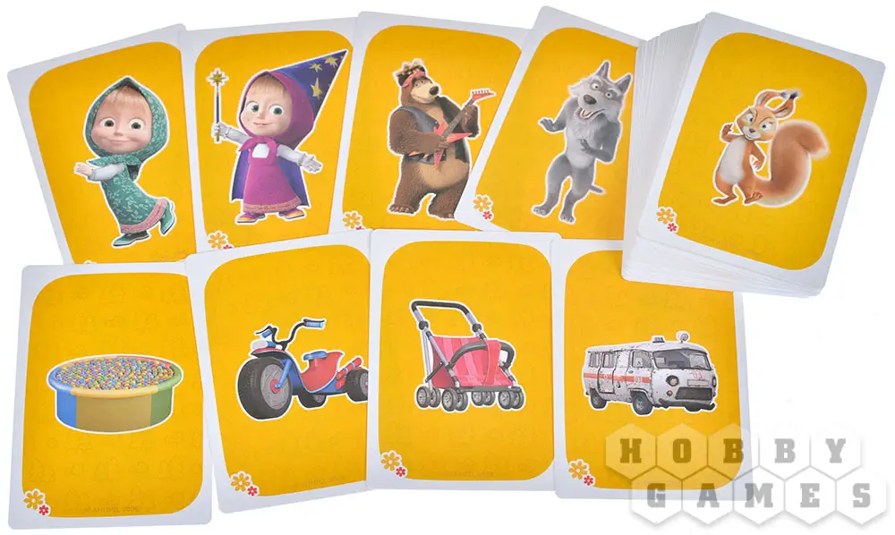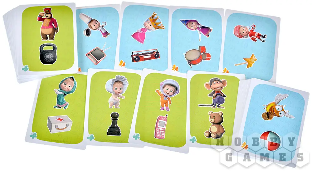 Так, и как тут ходят, чтобы победить? Игру начинает самый младший из игроков. Он переворачивает верхнюю карточку из колоды заданий, и все одновременно начинают искать на картах пряток того персонажа или предмет, который изображён на открытой карточке. А чтобы было интереснее и веселее, предметы и персонажи изображены по-разному. Например, предметы могут быть повёрнуты в разные стороны, а персонажи – в разных позах, образах или с разными предметами в руках (или лапах).